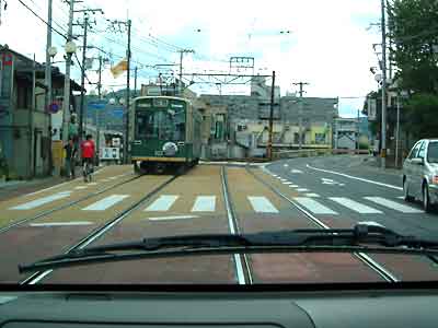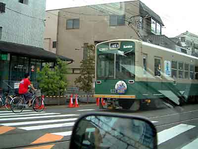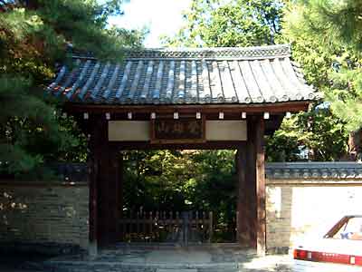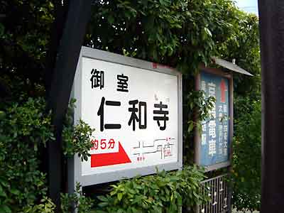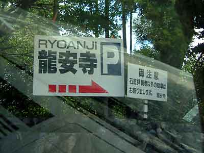 今出川通りを走っていくと正面に「北野白梅町駅」がドーンと現れる。ここでは注意が必要、駅のすぐ南(駅とイズミヤの間)の道をスーと入っていく。T字路に差し掛かるので右折してすぐ踏み切りを越える、この道が場代通りである。馬代を5分も走ると「木辻馬代」の交差点が見えてくるので左折。右に「堂本印象美術館」左には「立命館大学」この道が「きぬかけの路」である。立命館を越え少し走ると右側に「竜安寺」の看板。ようやくはじめの目的地に到着である。