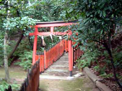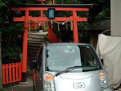 」のある交差点を左折。少しわかりにくいが「谷口水道工業」を右折、住宅街に入っていくので運転注意。途中一般者は入れないところがあるので、道なりに走ると右手路地奥に赤い鳥居が見える。鳥居の前にスペースがあるのでそこに駐車(できると思います。) |