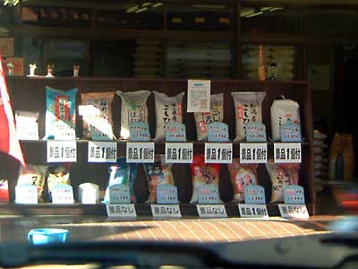 数十メートル走ると交差点、ここを右折(北行)する。交差点の正面にお米やさんがある。ここでお米を買うと景品がついてくるらしい。