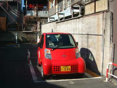 交差点を曲がるとそこは商店街。ちょっと寂れたいい感じのお店が次々現れる。後でゆっくり探索するとして、車をとめよう。左手に「カーコンビニクラブ」すぐ先に100円パークがある。今回はここで駐車。